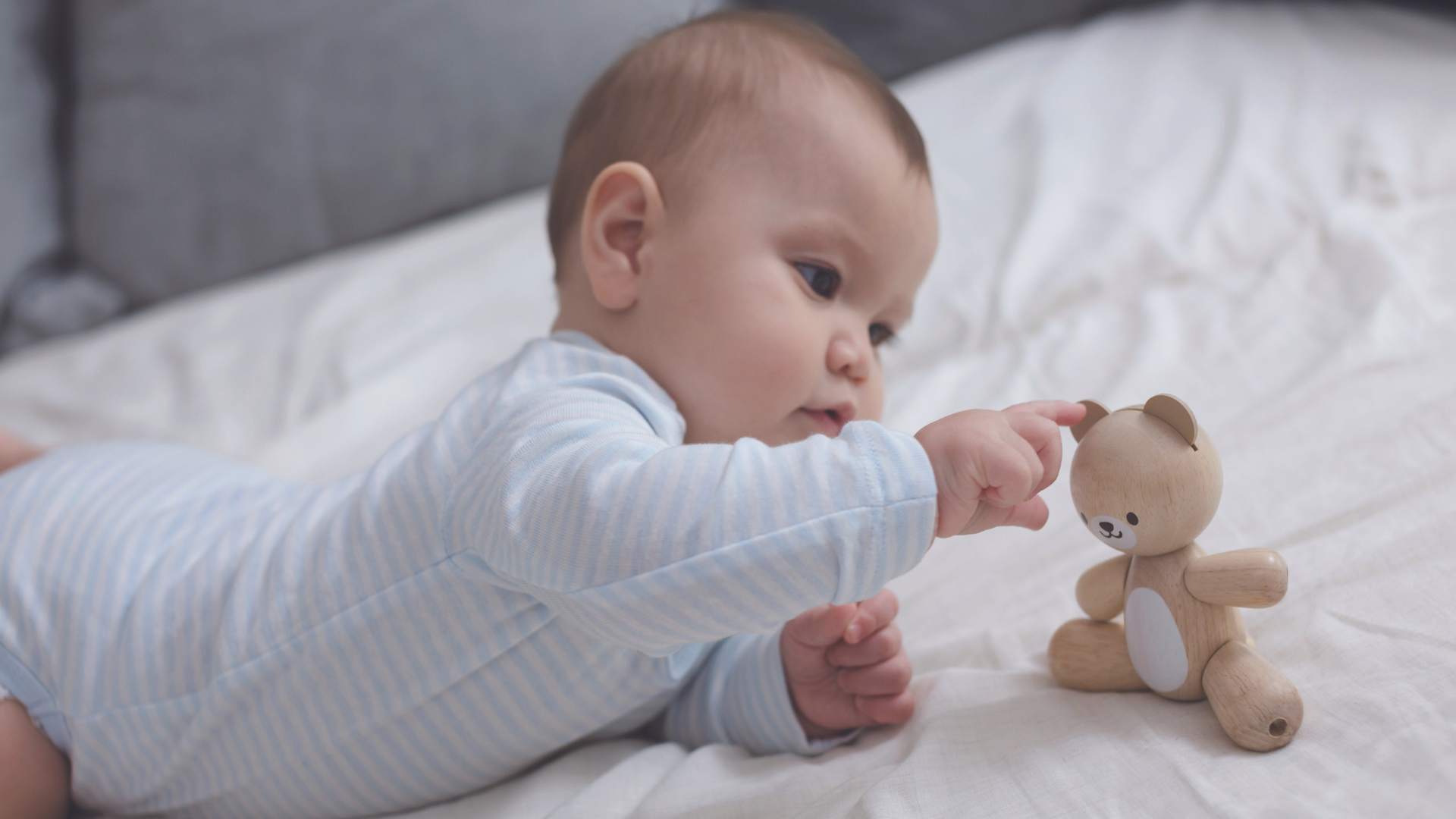 Jak jsme již zmiňovali, v prvních týdnech a měsících života se miminku rozvíjí zrak. Není tedy potřeba jej zahrnout pestrými hračkami a cinkrlátky, které ani neudrží v ručičkách, ale v první řadě se zaměřte na hračky, které se dají nad miminko zavěsit. Vytvořte mu takové denní prostředí, ve kterém bude moci pokukovat kolem sebe, nic jej nebude rušit a lekat, a poskytněte mu takové pomůcky, které budou stimulovat jeho zrak a motivovat ho k natažení ručičky po předmětu.