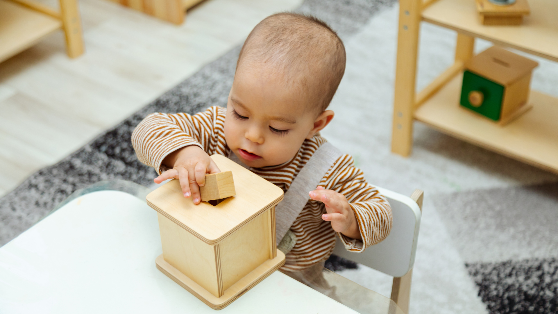 Nezapomínejte na trpělivost. Spolu s jemnou motorikou, koordinací oko-ruka a barevným vnímáním ji u dítka podpoříte ve hře s Dřevěnou skládací duhou, která nabízí velké množství aktivit, dále Stohovacími kroužky k navléknutí na dřevěný kolík, a nebo známou vkládačkou Třídění tvarů s možností bližšího seznámení se s geometrickými tvary. Využijte rovněž možnost pořídit Montessori pomůcku Kojenecká kasička, velmi oblíbenou vkládačku s pěti dřevěnými žetony a snadno otevíratelným šuplíkem.