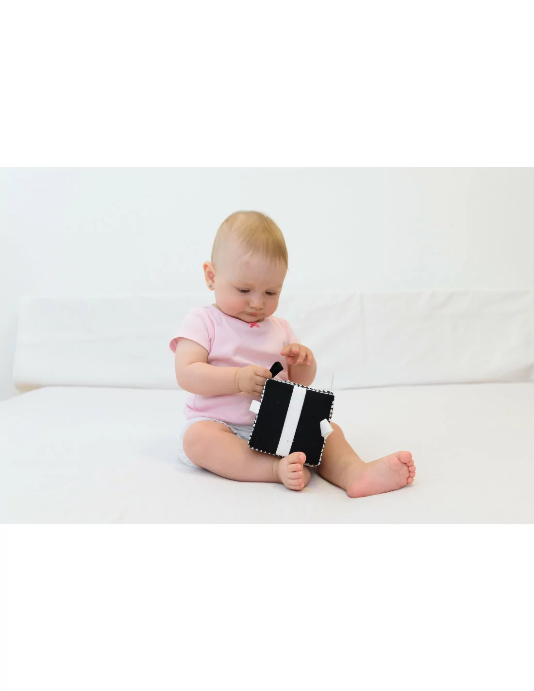 Různé vzory a geometrické tvary, znázorněné na kostce, napomáhají k tomu, aby je miminko fixovalo očima, zaostřilo zrak a snažilo se tak hračku zkoumat.