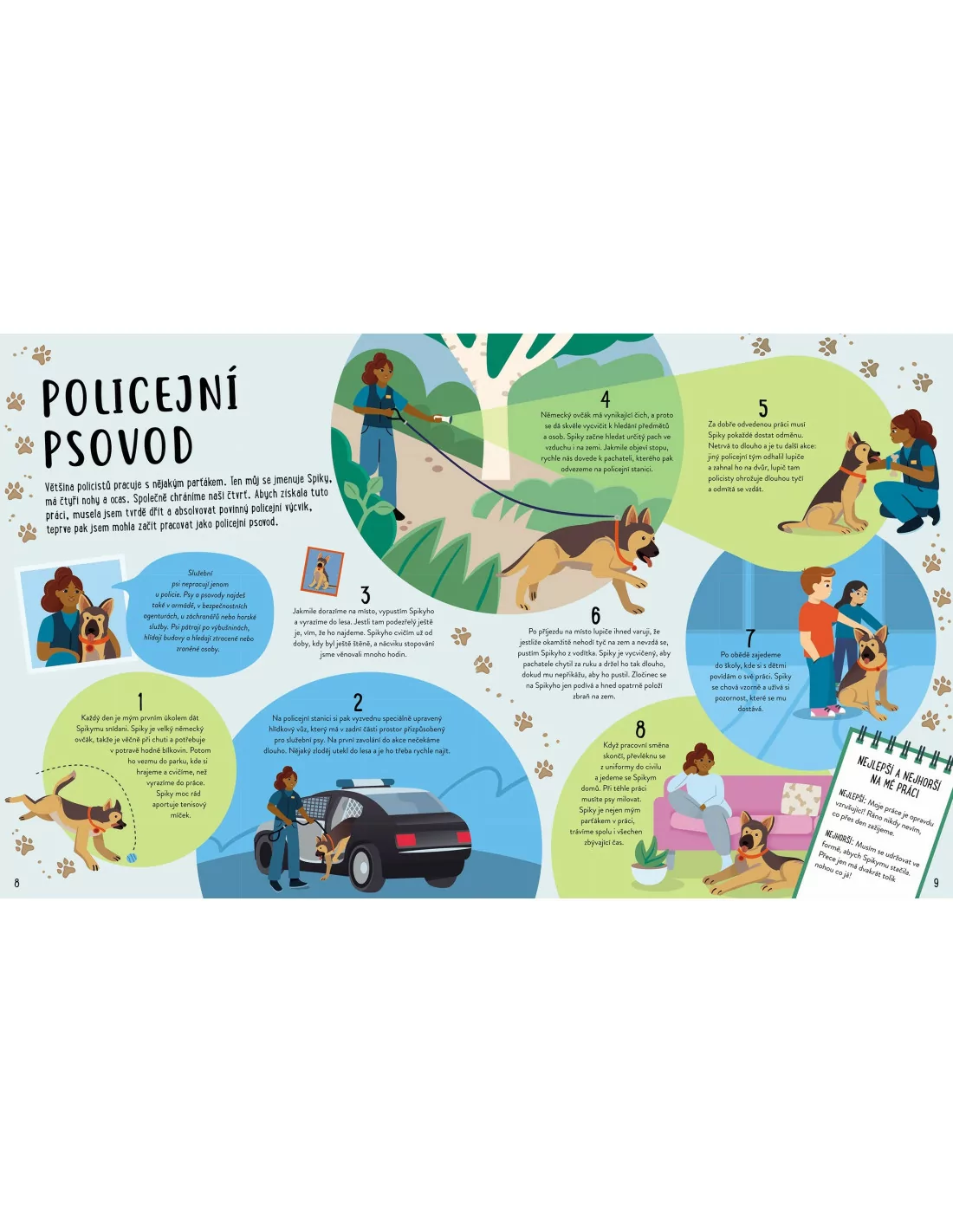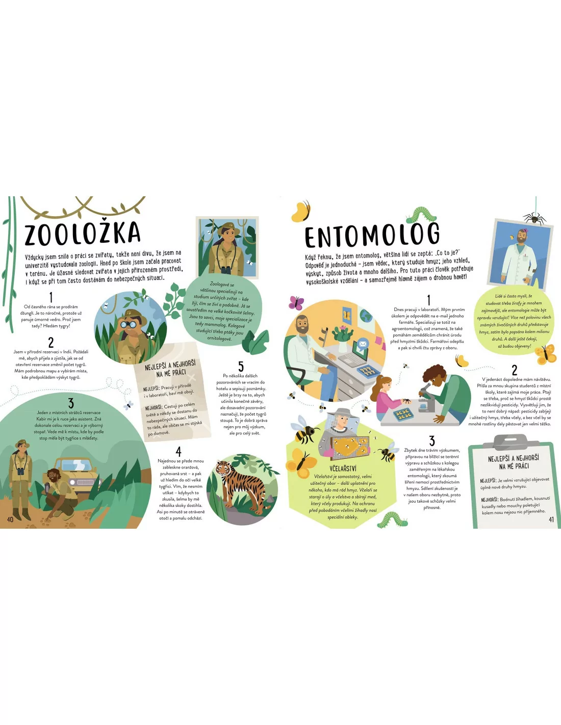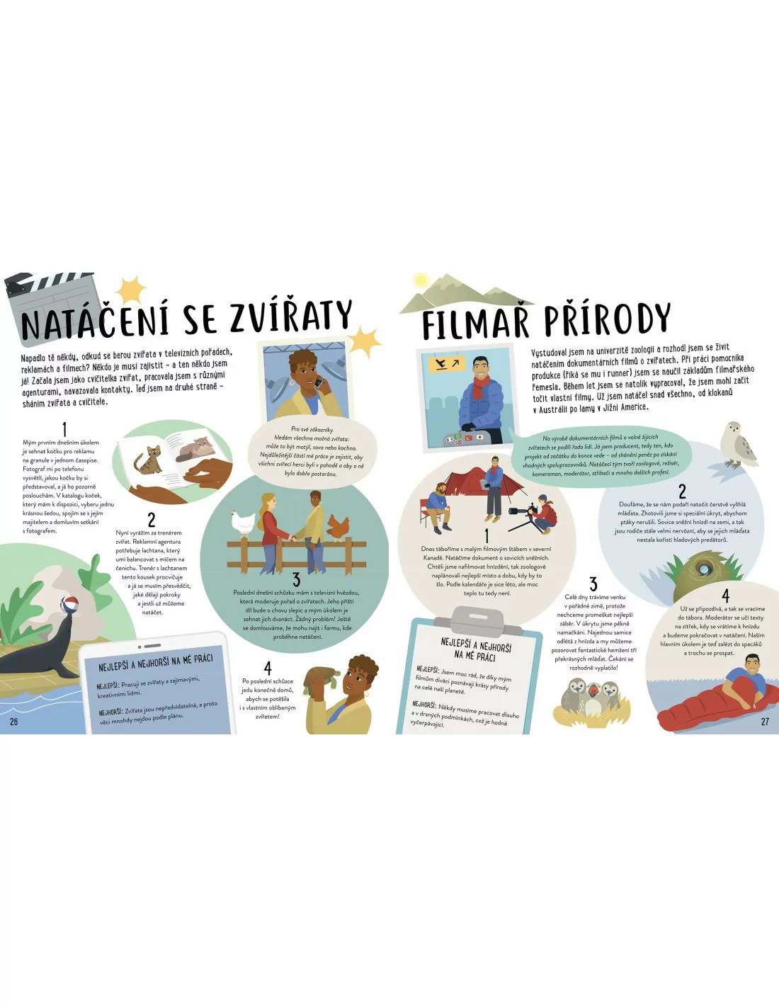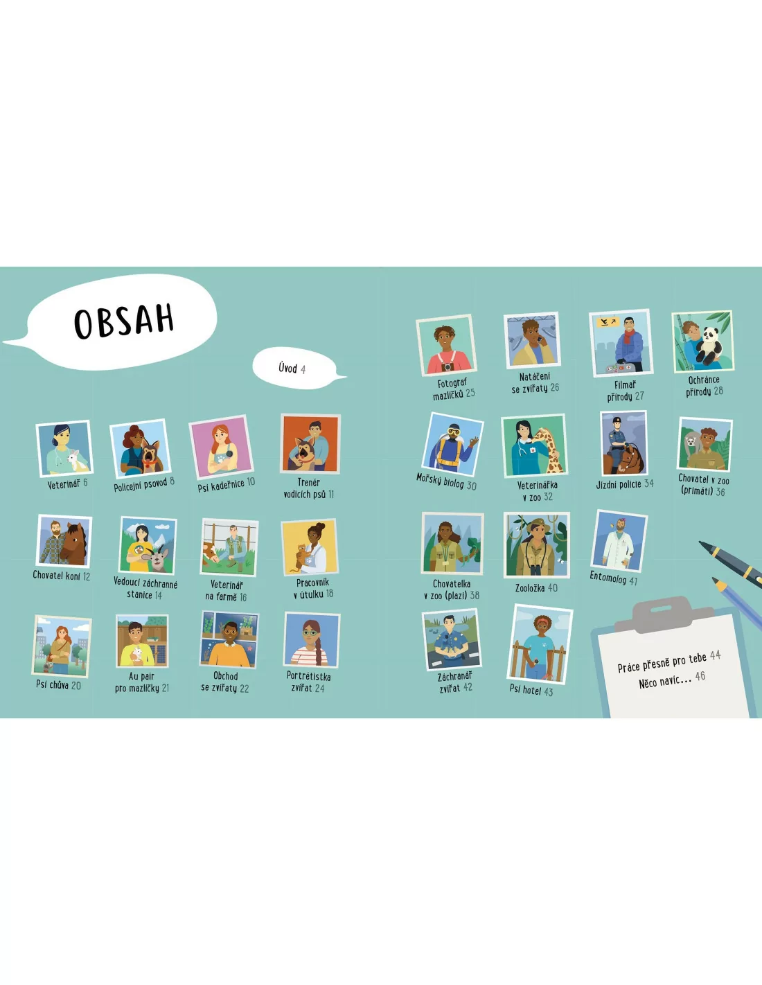 Na celkem 48 stranách knihy se seznámíte s 25 lidmi, kteří při své pracovní pozici přicházejí do styku se zvířaty. V knize se dozvíte mnoho zajímavých a užitečných informací, které se budou v rozhodování o práci určitě hodit:
