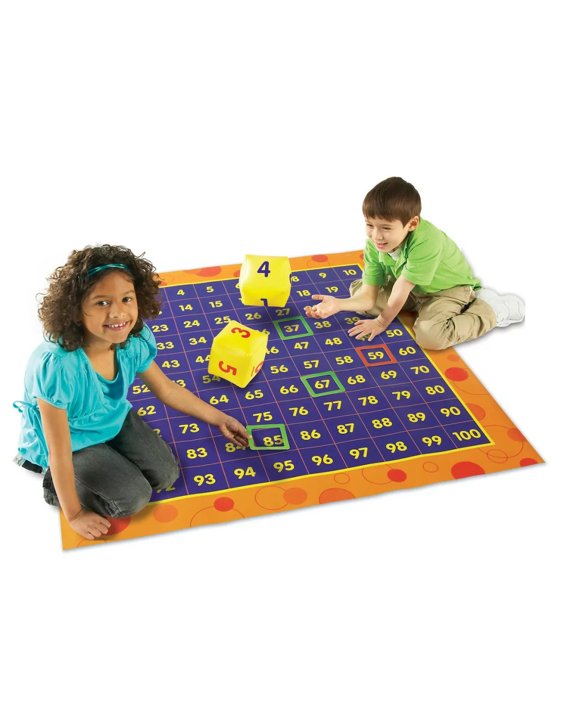 Aktivní stovková tabule, která je vhodná jako učební pomůcka do škol i školek. Víceúčelová rohož na zem umožňuje dětem zábavným způsobem počítat, chápat vzorce nebo řešit úlohy.