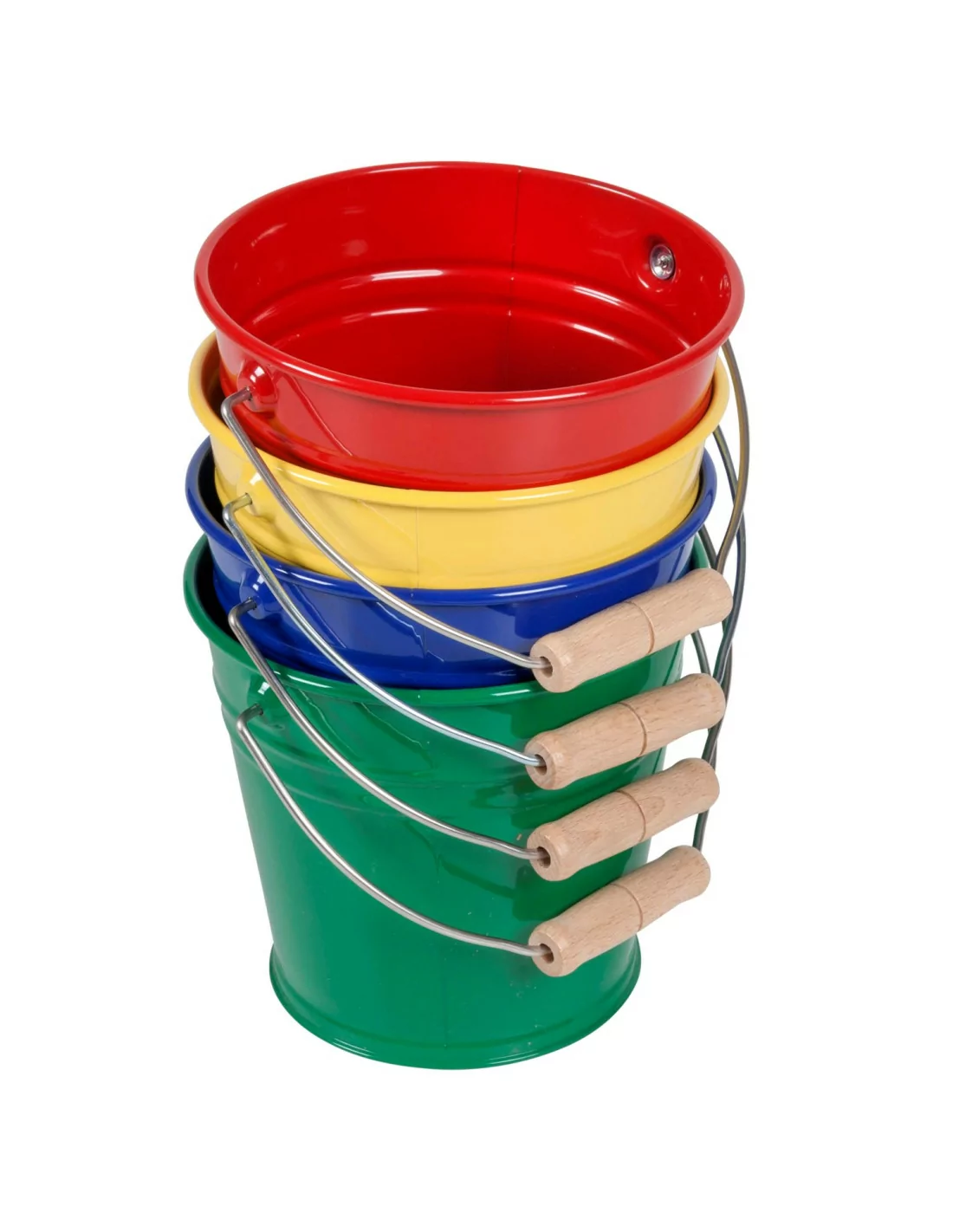Malé kovové vědro v červené barvě je vhodné pro mnoho praktických cvičení.